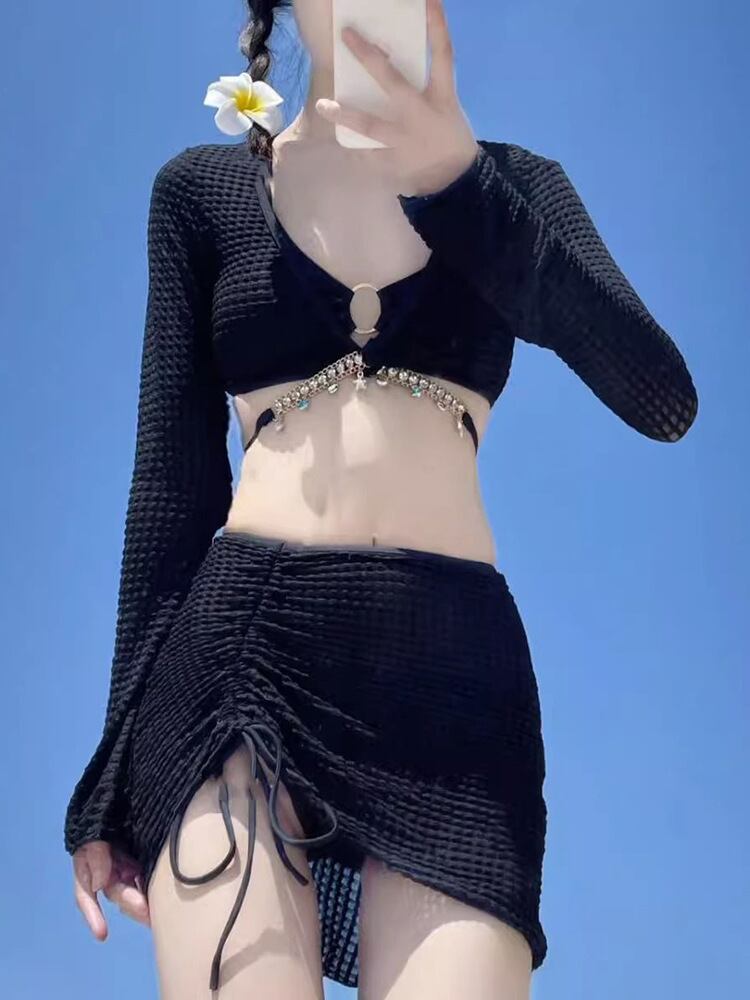 水着 ビキニ 4点上下セット レディース セクシー おしゃれ★★ 水着 レディース おしゃれ ビーチ ビキニ リゾート プール 体型カバー スリム 可愛い インスタ映え セパレート 露出控えめ 盛れるハイウエスト 韓国 日焼け対策 競泳 スイムウェア日焼け防止 スタイルアップ 着痩せ | DOKO-ME