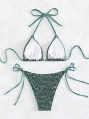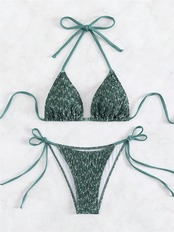 モデル番号:V0610 Women Swimwear Cactus Print Cut Out Bow Knot Bikini Set