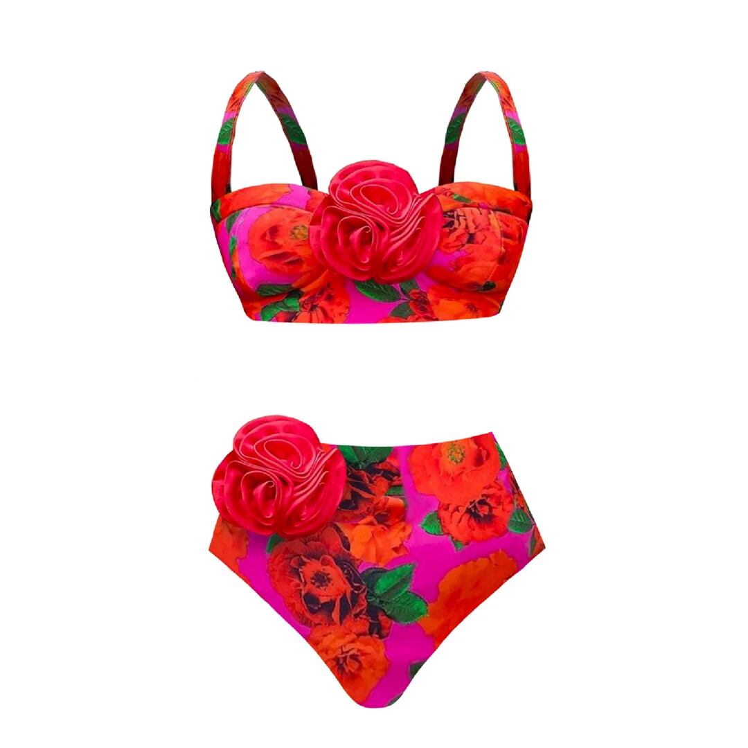 ツーピースの女性用3Dフラワービキニ,ハイウエスト水着とアンダーワイヤーの水着,プッシュアップ,夏,2022 ビキニ Tシャツ T240619004346_03