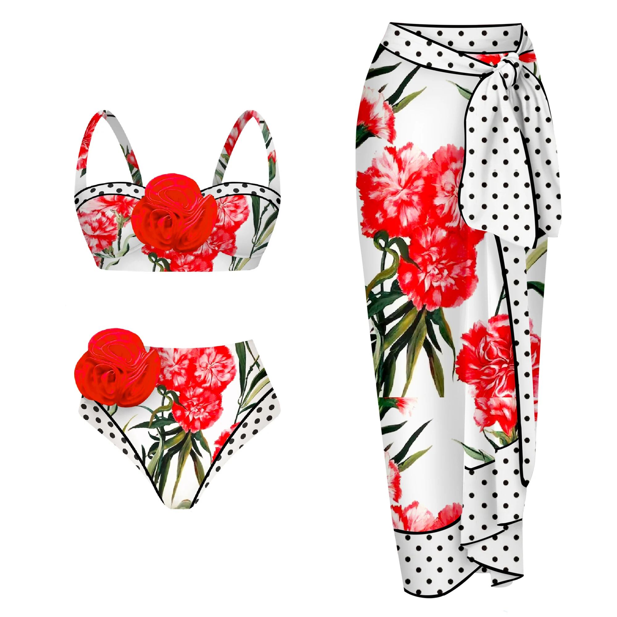 ツーピースの女性用3Dフラワービキニ,ハイウエスト水着とアンダーワイヤーの水着,プッシュアップ,夏,2022 ビキニ Tシャツ T240619004346_11