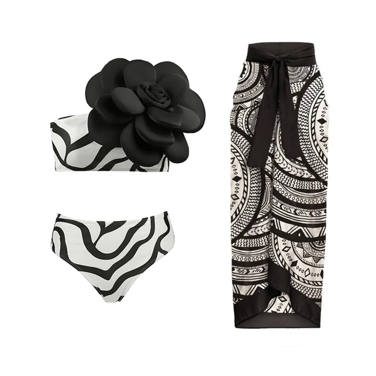 女性のためのセクシーなフローラルビキニカバーアップ、ソリッド3Dフラワー水着、高級水着、女性のためのビーチウェア、夏の水着スカート、2022 ビキニ Tシャツ T240619004403_63 | DOKO-ME