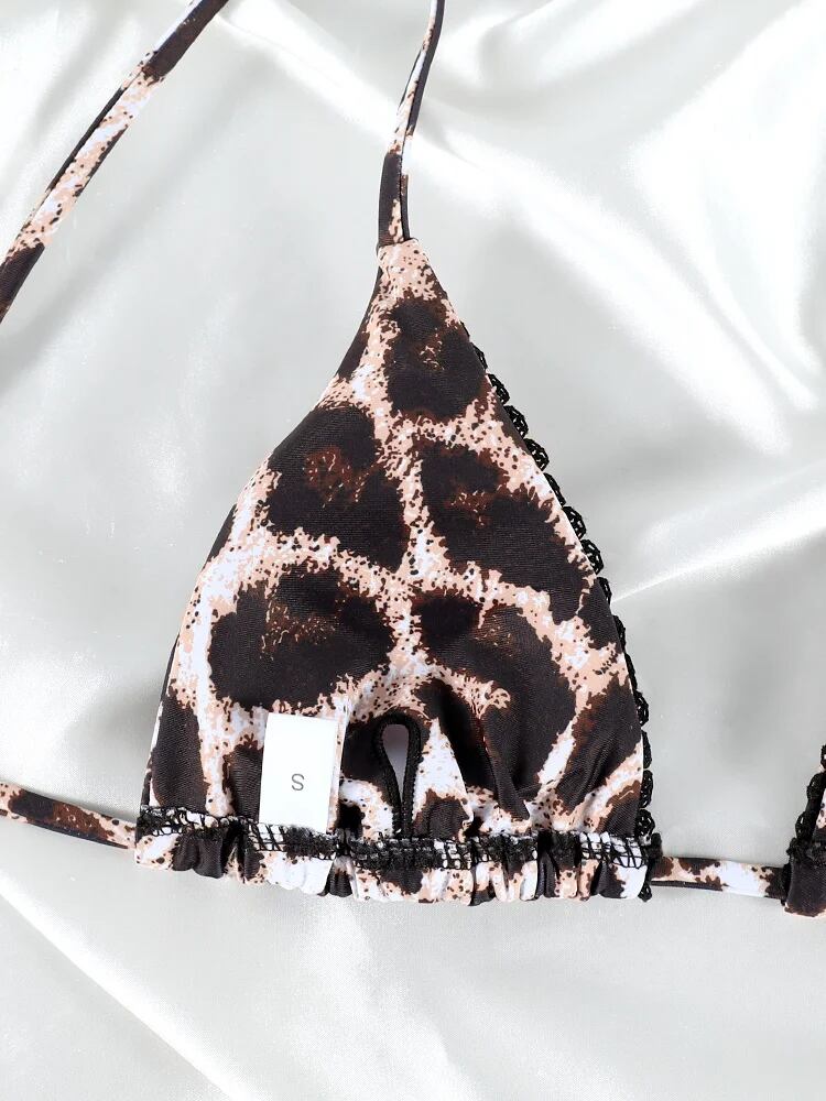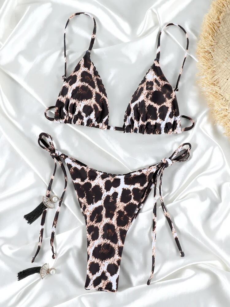 Coobbu 女性用ヒョウ柄ビキニ、セクシーな水着、三角形の水着、バンデージビーチウェア、マイクロひも、2ピースの水着、新しいビキニ ビキニ Tシャツ T240619005956_01 | DOKO-ME