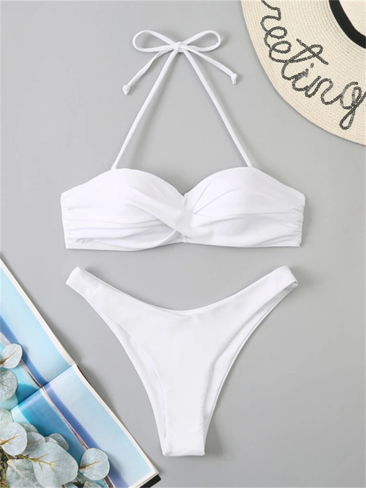 女性のためのセクシーなツーピース水着,無地,ホルターネック,ひもパンティー,ギャザー,ビーチウェア,新しい夏のコレクション2023 ビキニ Tシャツ T240619010135_02 | DOKO-ME