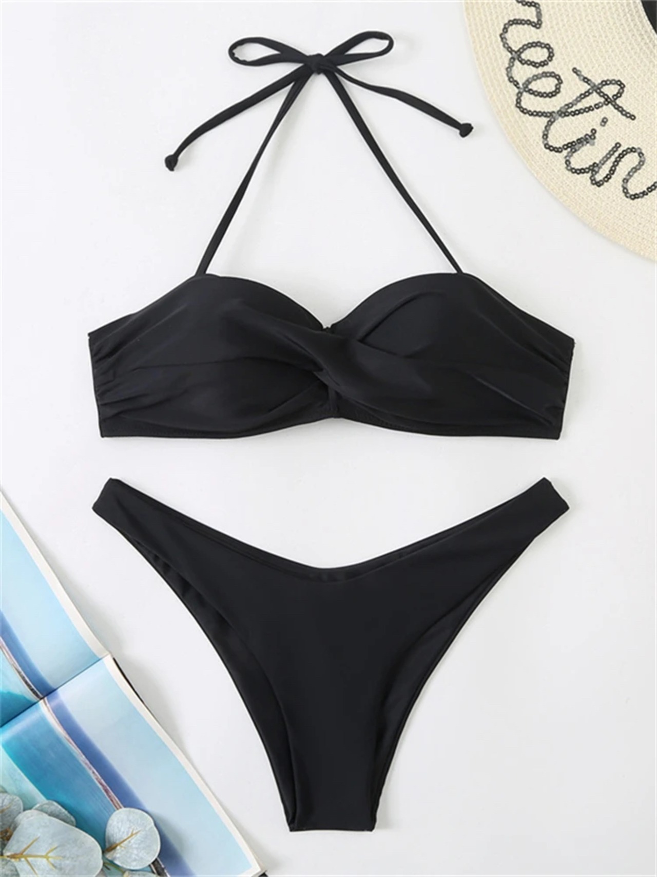 女性のためのセクシーなツーピース水着,無地,ホルターネック,ひもパンティー,ギャザー,ビーチウェア,新しい夏のコレクション2023 ビキニ Tシャツ T240619010135_03 | DOKO-ME
