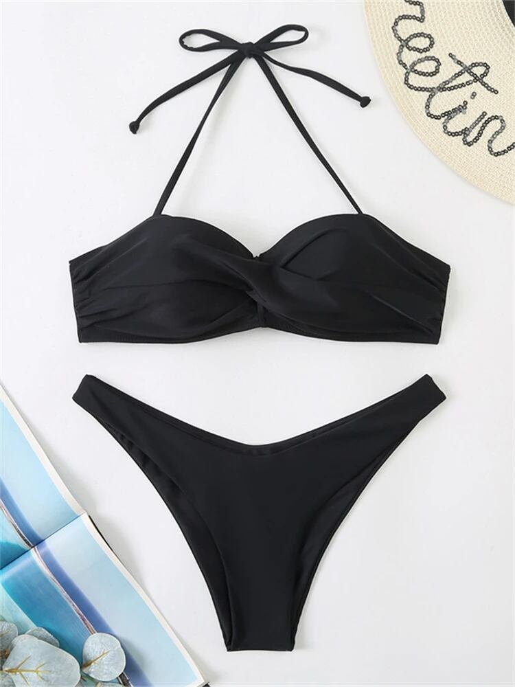 女性のためのセクシーなツーピース水着,無地,ホルターネック,ひもパンティー,ギャザー,ビーチウェア,新しい夏のコレクション2023 ビキニ Tシャツ T240619010135_04 | DOKO-ME