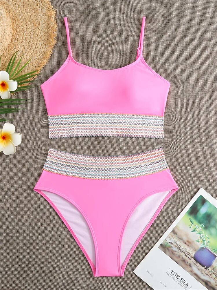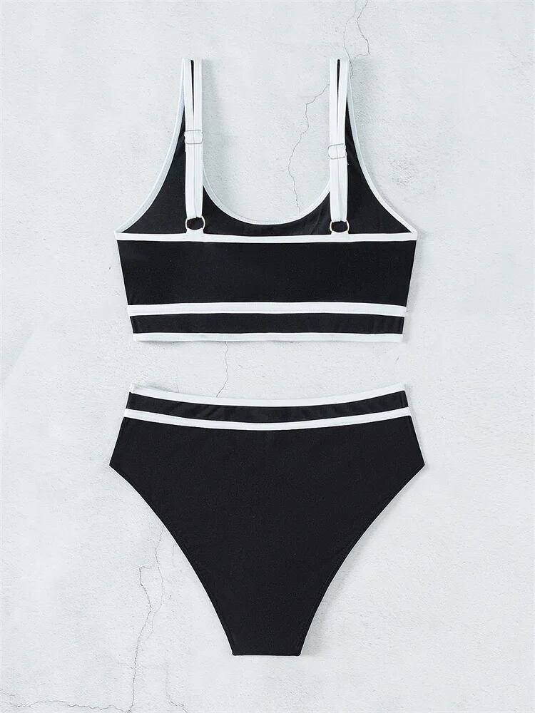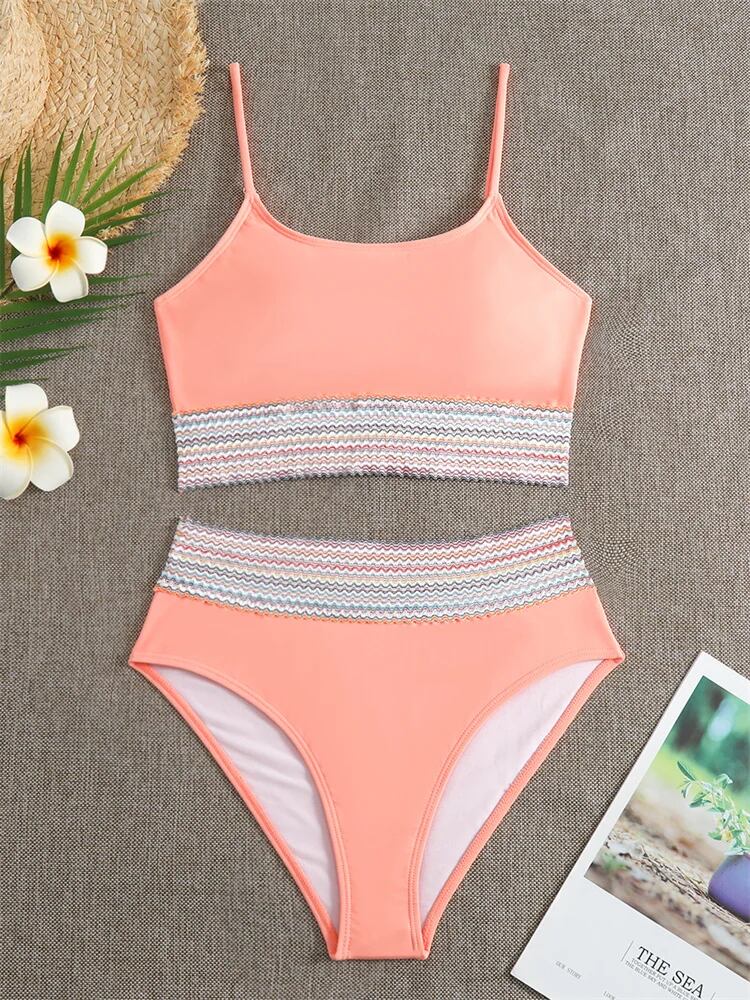 女性の腕立て伏せビキニ,単色のハイウエスト水着,女性のひも水着,セクシーな夏の水着,ビーチウェア,2022 ビキニ Tシャツ T240619010207_04