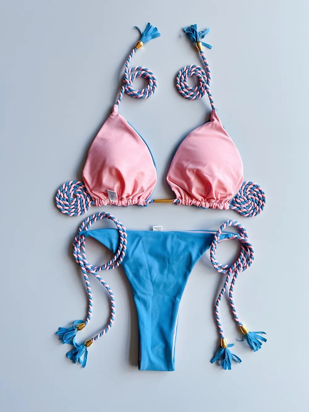女性用ブラックトライアングルビキニセット,ひも水着,セクシーな包帯水着,ビーチウェア,2個,2023 ビキニ Tシャツ T240619010256_06