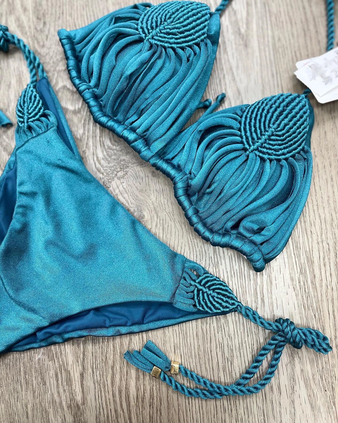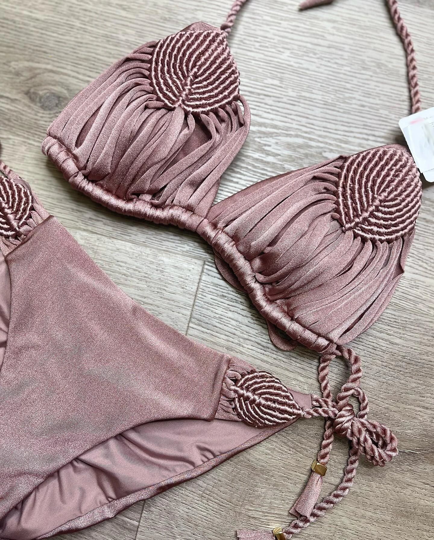 女性用編組ロープ付き水着,ツーピースセット,包帯,レースアップ,セクシー,ビーチウェア,新しいコレクション2022 ビキニ Tシャツ T240619010417_04