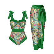カラフルな花柄の水着,ヴィンテージ,女性用,ワンピース,カバーアップ,モノキニ,セクシー,ビーチウェア ビキニ Tシャツ T240619010542_02