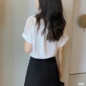 女性用Vネックメッシュパッチワークシフォンシャツ、半袖ブラウス、カジュアルトップ、オールマッチプルオーバー、単色、エレガントファッション、夏 Tシャツ シャツ T240619143124_03 | DOKO-ME