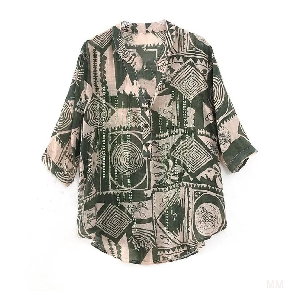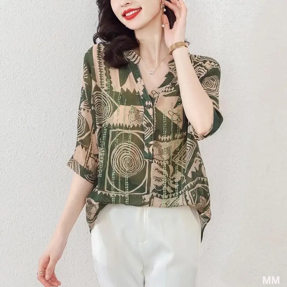 女性のカジュアルな半袖シャツ,ゆったりとしたボタンのカーディガン,エレガントなプリント,快適なオールマッチのトップス,ハイストリートファッション,新しい夏のコレクション Tシャツ シャツ T240619143128_01 | DOKO-ME