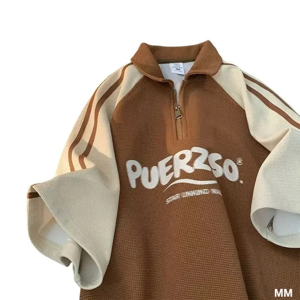 男性と女性のためのハーフジッパーポロシャツ,大きなカジュアルなTシャツ,スイムダウンカラーのラージサイズ,半袖,レタリング,夏 Tシャツ シャツ T240619143153_02