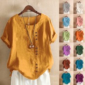 女性のカジュアルなリネンとコットンのブラウス,エレガントなボタンの半袖シャツ,プラスサイズのタンビック自由奔放に生きるスタイルのトップスとブラウス,ストリートウェア,夏,2023 Tシャツ シャツ T240619143352_02 | DOKO-ME
