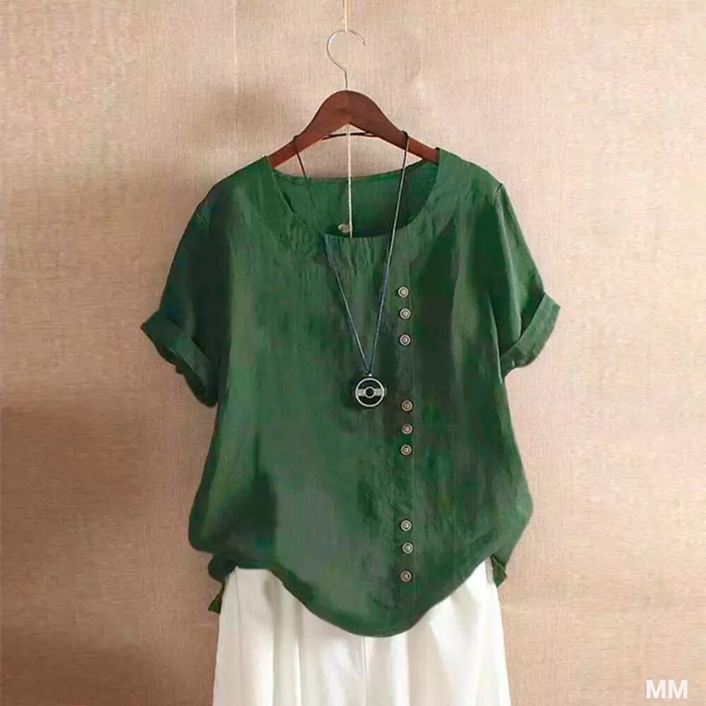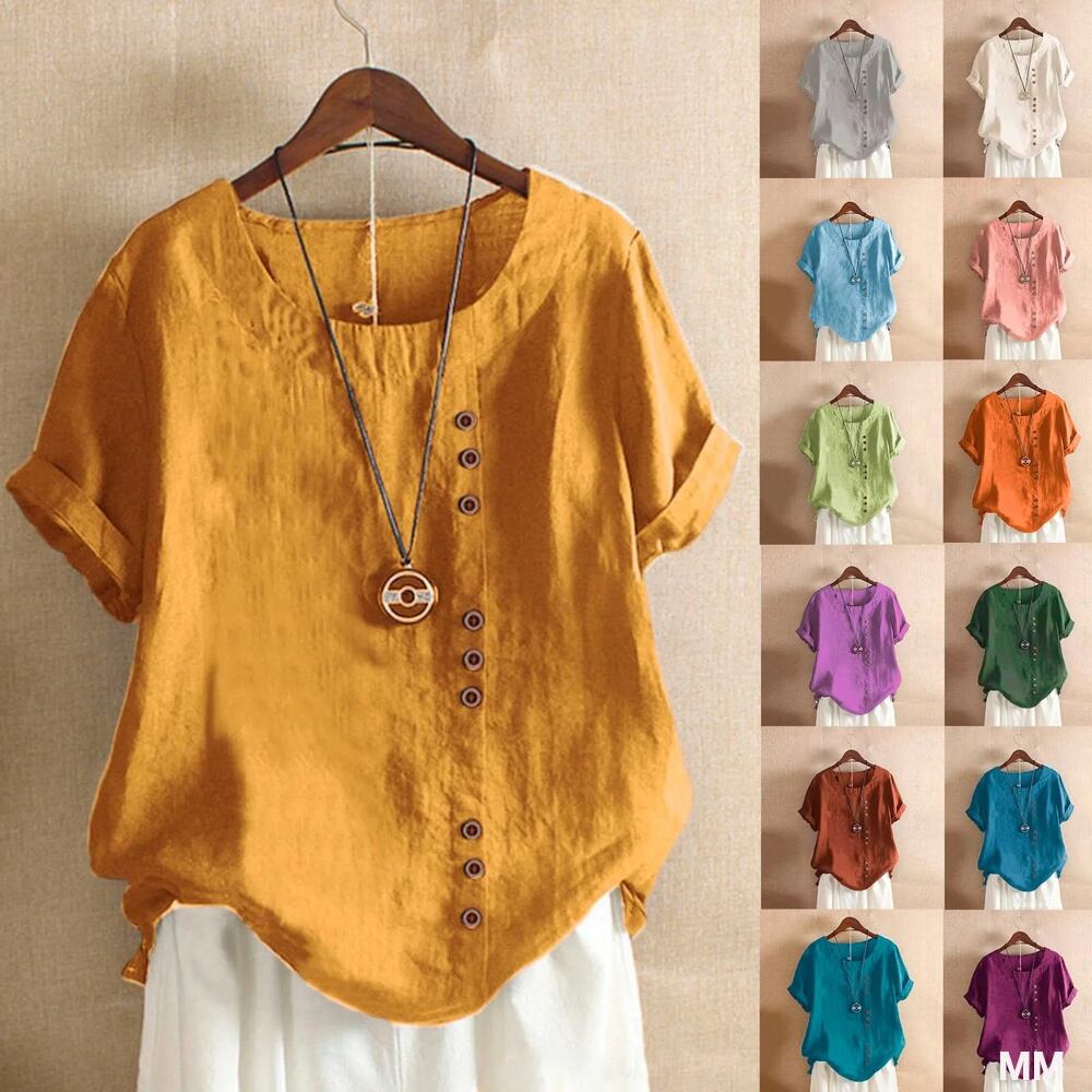 女性のカジュアルなリネンとコットンのブラウス,エレガントなボタンの半袖シャツ,プラスサイズのタンビック自由奔放に生きるスタイルのトップスとブラウス,ストリートウェア,夏,2023 Tシャツ シャツ T240619143352_12 | DOKO-ME