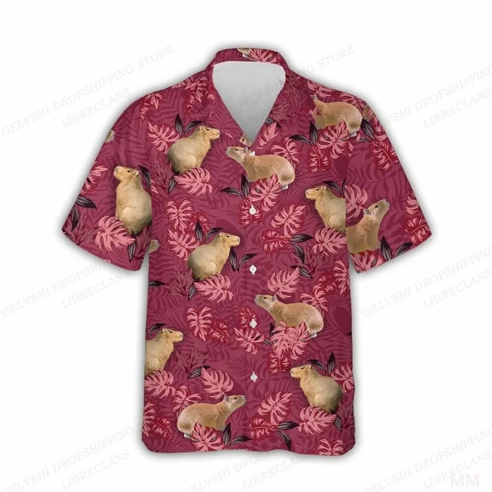 Capyオル 男性と女性のためのハワイアンシャツ、襟付き半袖シャツ、花柄デザイン、ファッション、ビーチ、夏用 Tシャツ シャツ T240619143420_06