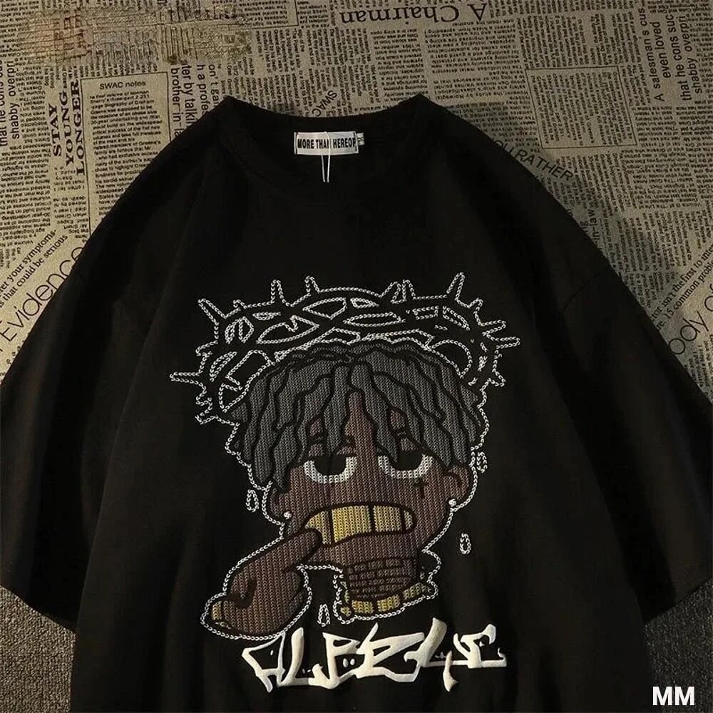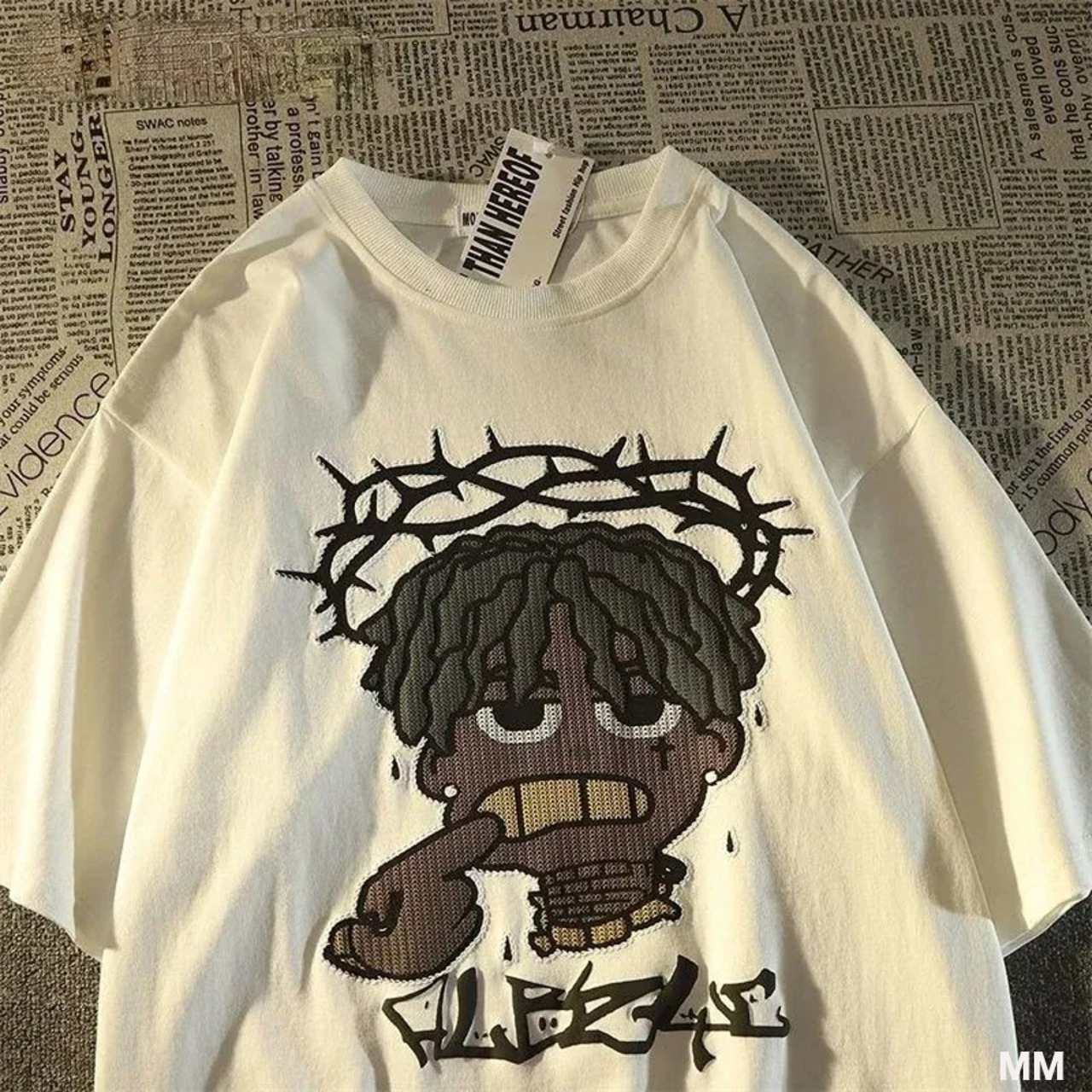 女性と男性のためのレトロなTシャツ,大きなストリートの漫画の服,非常にルーズ,カジュアル,半袖,カップル,夏 Tシャツ シャツ T240619151405_03