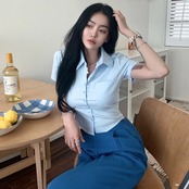 女性用半袖ボタンブラウス,細いシャツ,襟を折りたたんだ無地のトップス,y2k, CDPF WYP 52,夏 ボトム ボトムス ズボン T240619143211_01