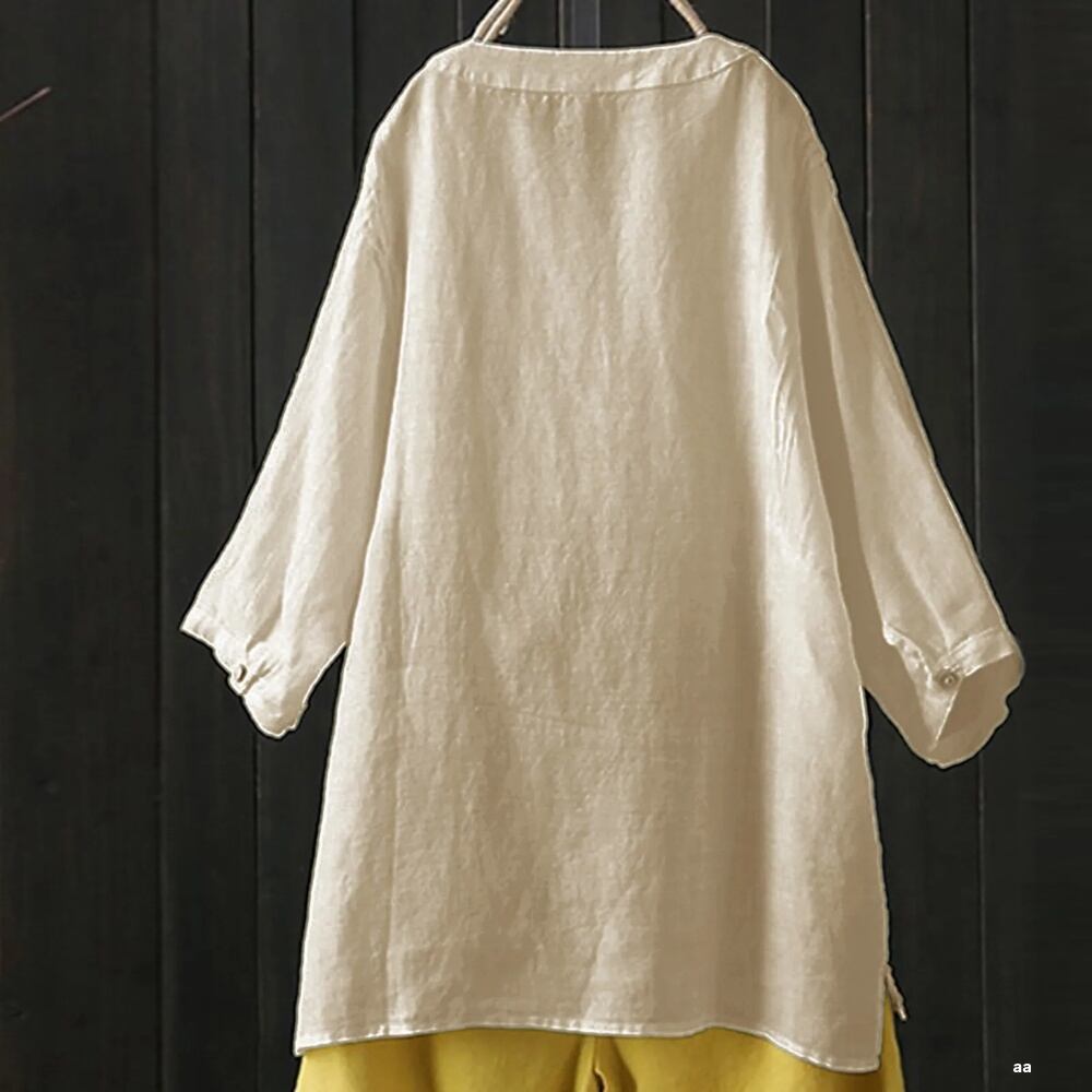 女性用半袖リネンとコットンのサマーシャツ,カジュアルなフェミニンなチュニック,ラージサイズ,2023 ボトム ボトムス ズボン T240619143329_04