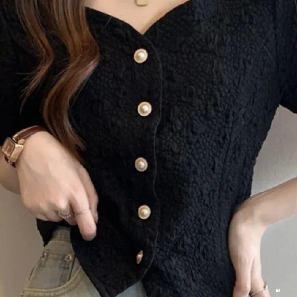 女性のためのレトロな韓国スタイルの柔らかいボタンのシャツ,スクエアカラー,無地,半袖,シックなy2kトップス,エレガントなファッション,夏,新しい,2024 ボトム ボトムス ズボン T240619143446_02 | DOKO-ME