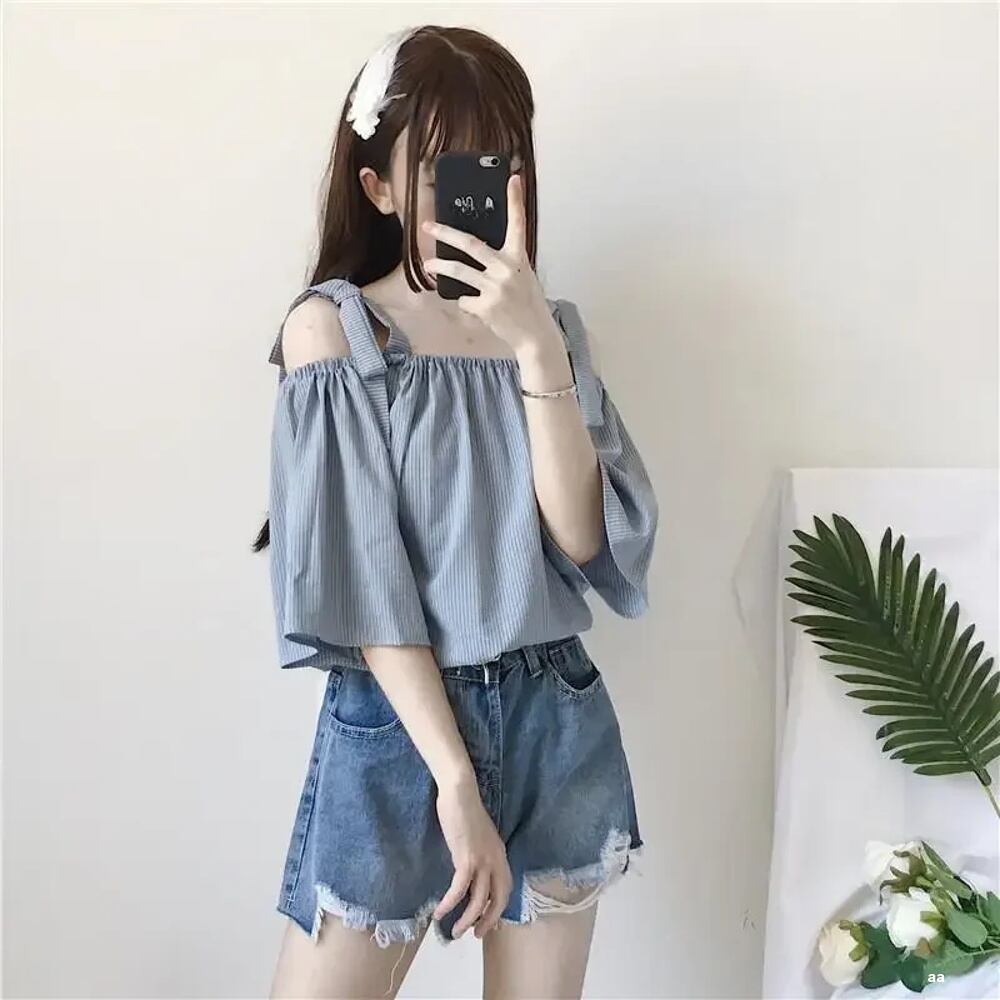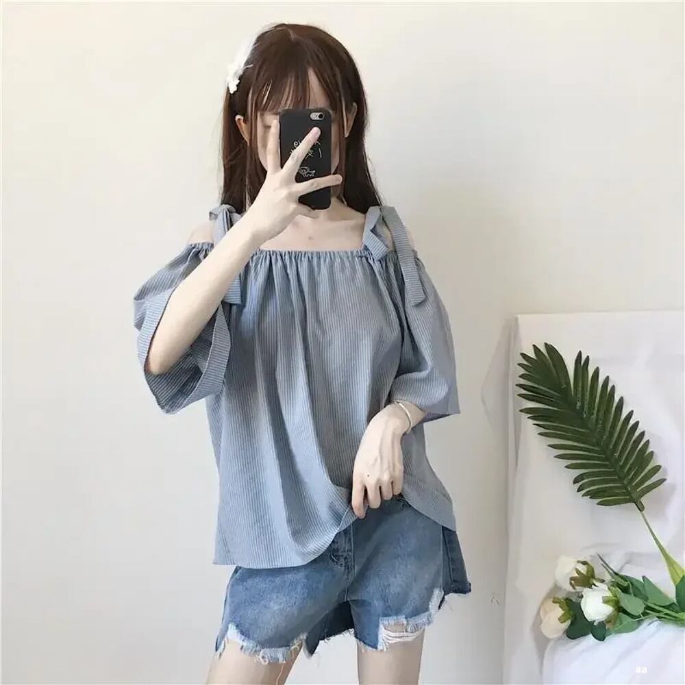 女性用半袖トップス,ルーズフィット,裸の肩,カジュアル,快適,通気性,夏,2024 ボトム ボトムス ズボン T240619143452_01