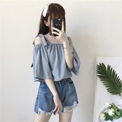女性用半袖トップス,ルーズフィット,裸の肩,カジュアル,快適,通気性,夏,2024 ボトム ボトムス ズボン T240619143452_02