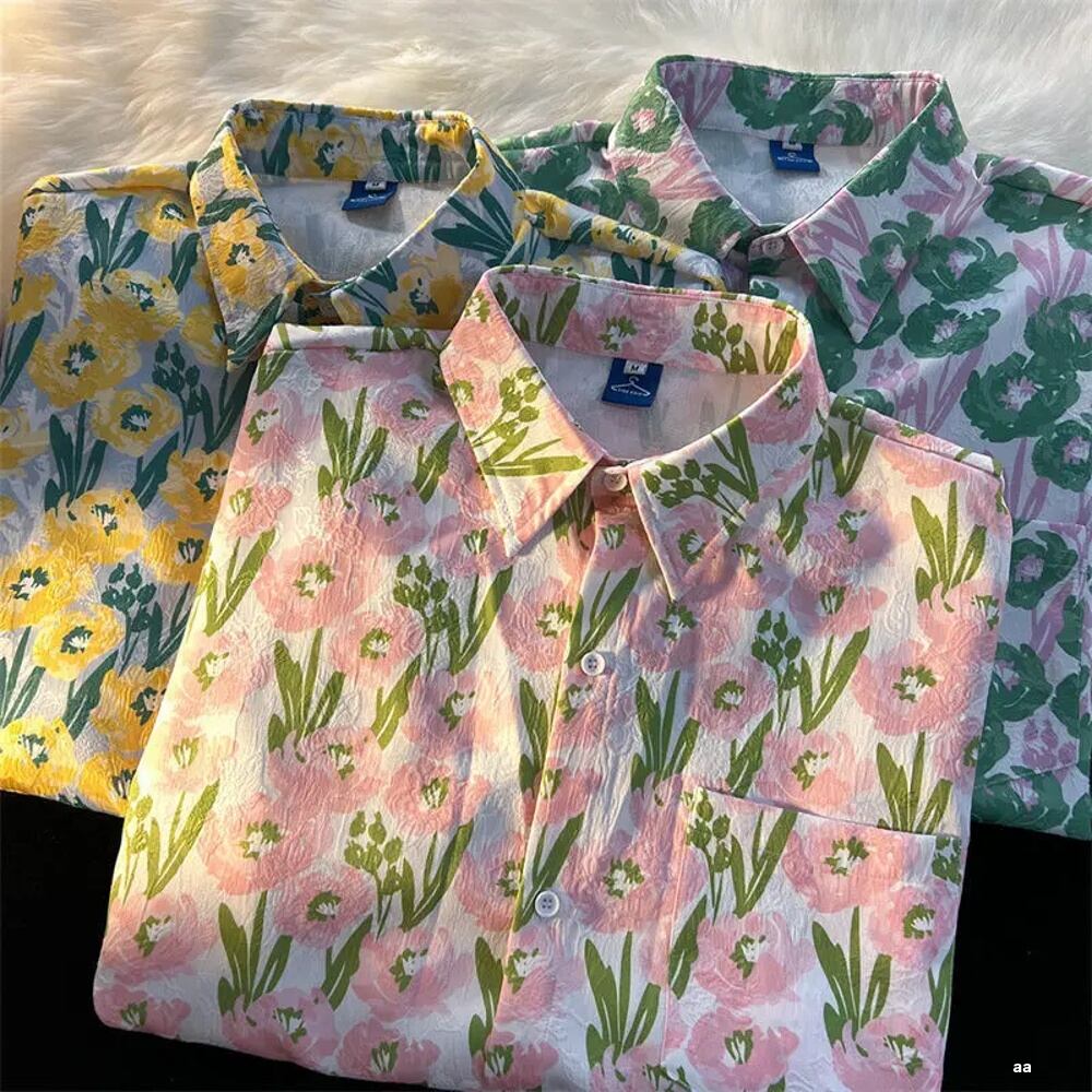 女性用半袖ボタンダウンシャツ,カジュアル,ヴィンテージ,花柄,ファッショナブル,夏,ストリートウェア,原宿 ボトム ボトムス ズボン T240619143459_03