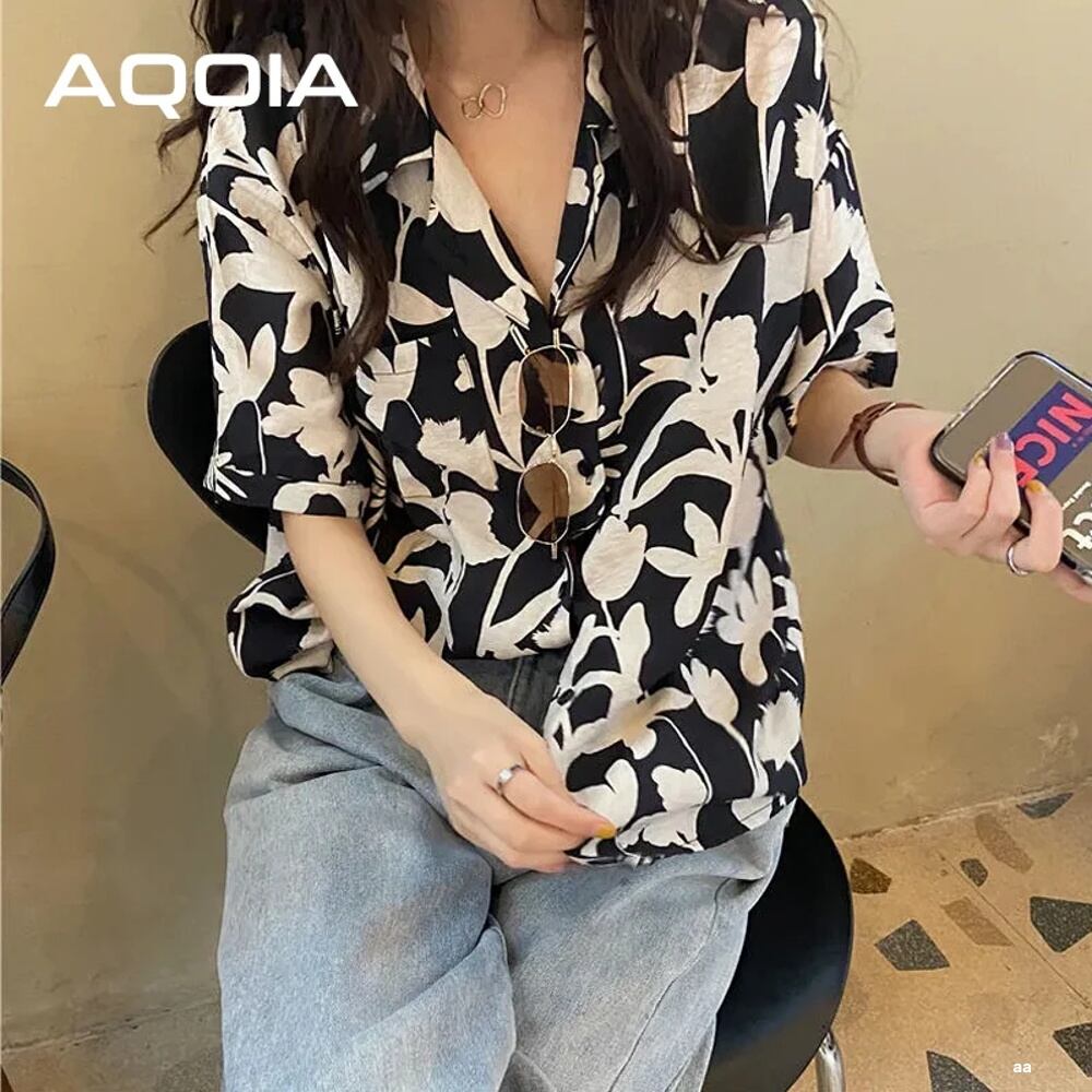 女性のためのシックなフローラルプリントブラウス,ボタン付きの特大半袖シャツ,オフィスブラウス,女性のためのルーズなサマーシャツ2022|シャツ| ボトム ボトムス ズボン T240619143514_01 | DOKO-ME