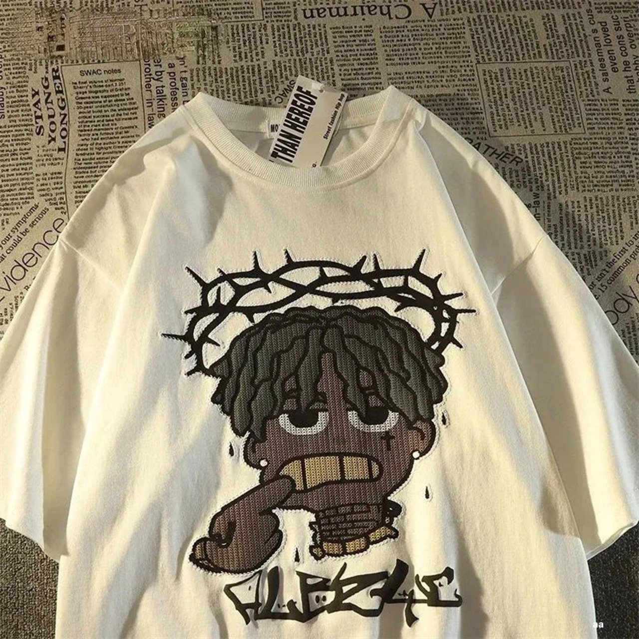 女性と男性のためのレトロなTシャツ,大きなストリートの漫画の服,非常にルーズ,カジュアル,半袖,カップル,夏 ボトム ボトムス ズボン T240619151405_04