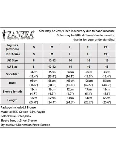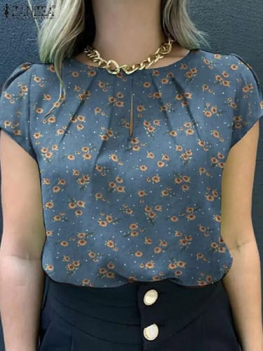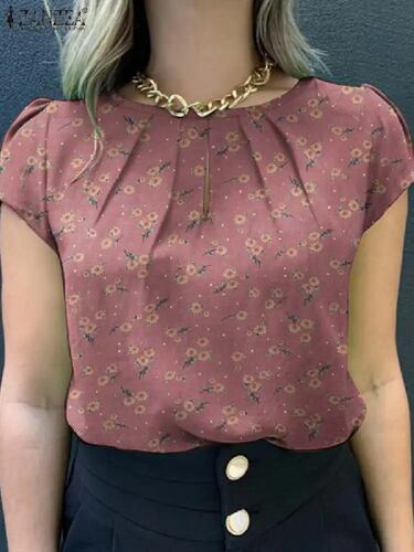 Zanzea-ボヘミアンカジュアルフローラルプリントブラウス、半袖、ラウンドネック、チュニックトップ、エレガントなパーティー、ホリデーファッション、夏