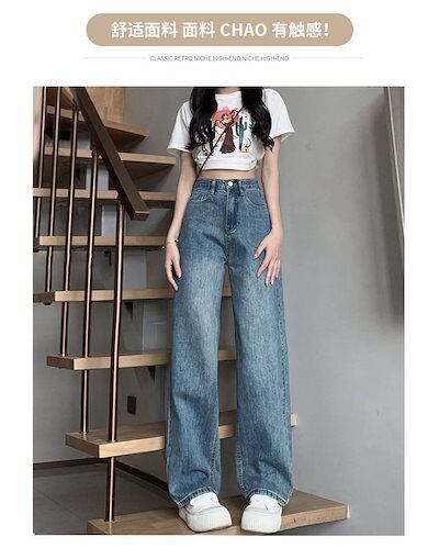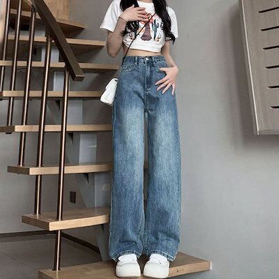 デニムワイドパンツ 秋新作 ワイドパンツ ストレートシリンダ ゆとりがある ドレープパンツ 復古 韓国ファッション 百掛け やせて見える2