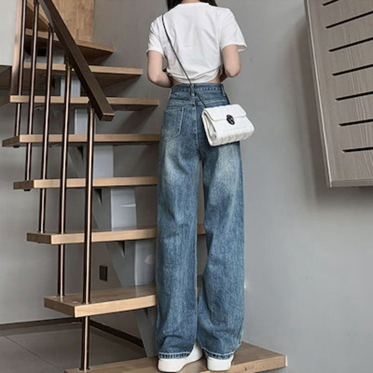 デニムワイドパンツ 秋新作 ワイドパンツ ストレートシリンダ ゆとりがある ドレープパンツ 復古 韓国ファッション 百掛け やせて見える5