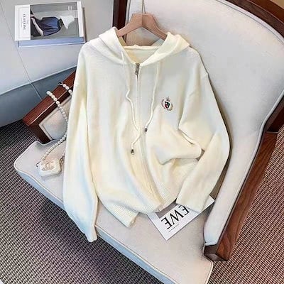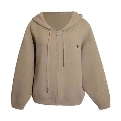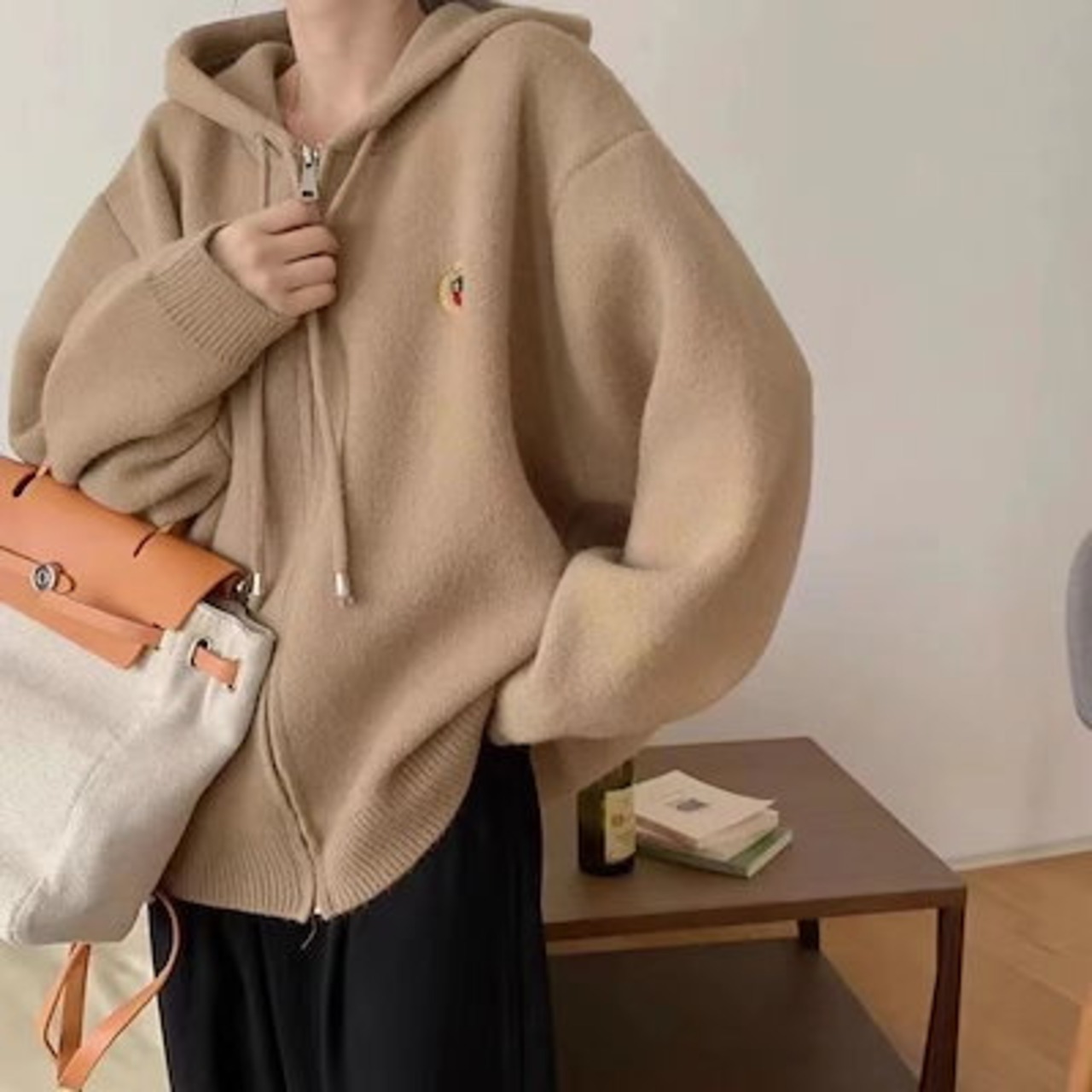 アウター 秋新作 エンブレム刺繍 フード付きセーターコート コート着 ゆとりがある 秋 ファスナーウールカーディガン 韓国ファッション 百掛け やせて見える10