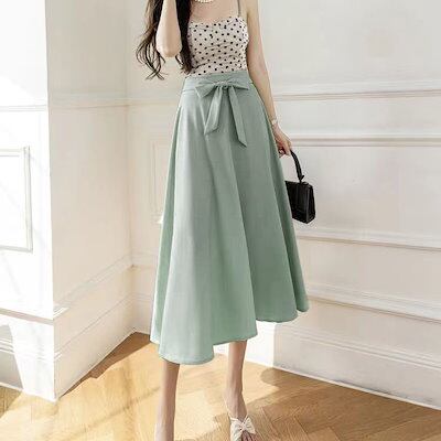 ミディアムスカート 秋新作 ブレザースカート 垂下感 スカート じゅんしょく ワンチップ 百掛け やせて見える 韓国ファッション
