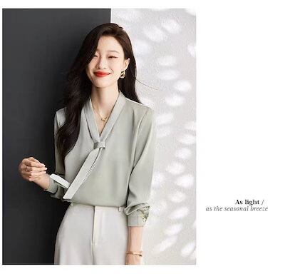 レディースシャツ 長袖 秋新作 ワイシャツレディース v襟レディーストップス 百掛け やせて見える 韓国ファッション10