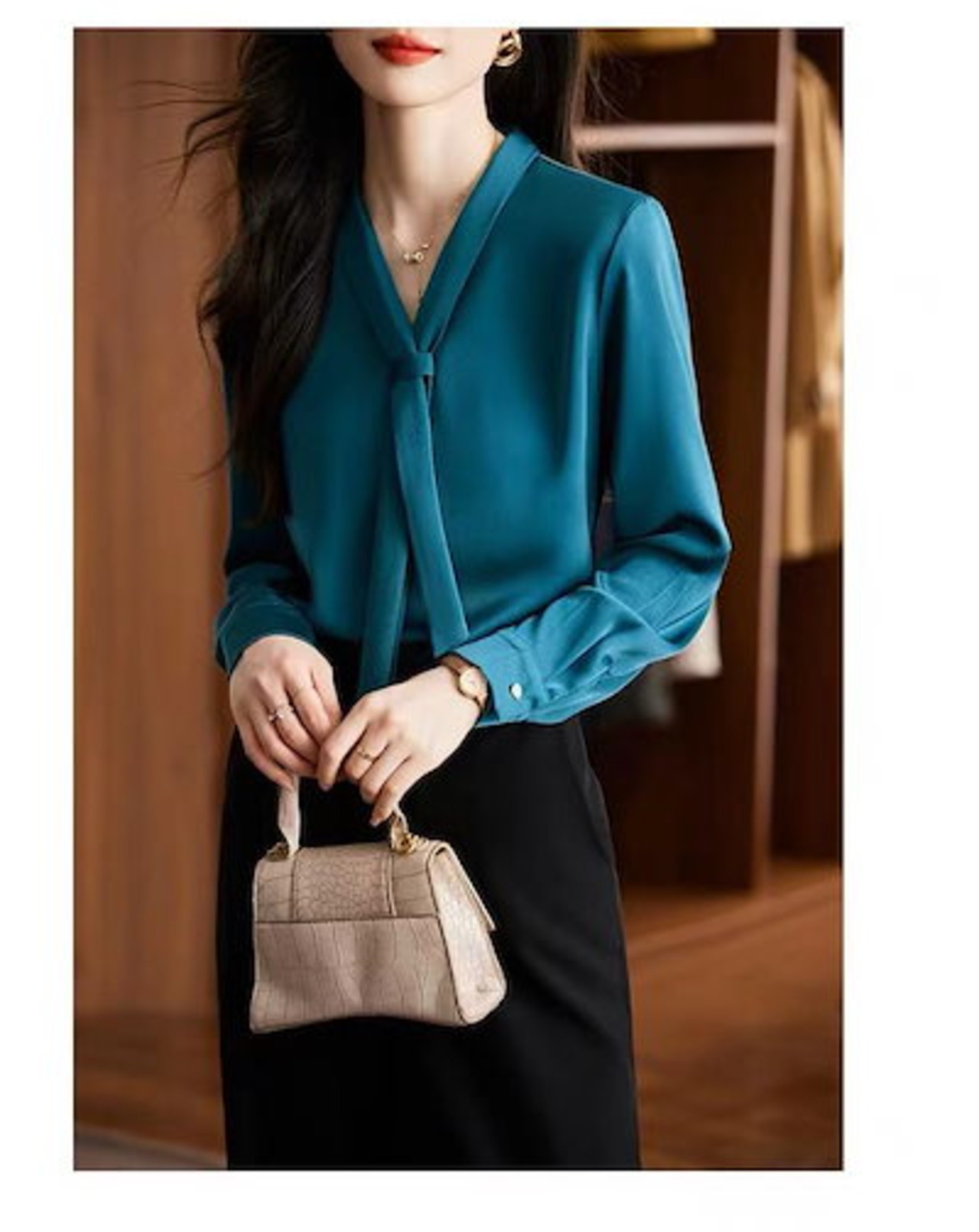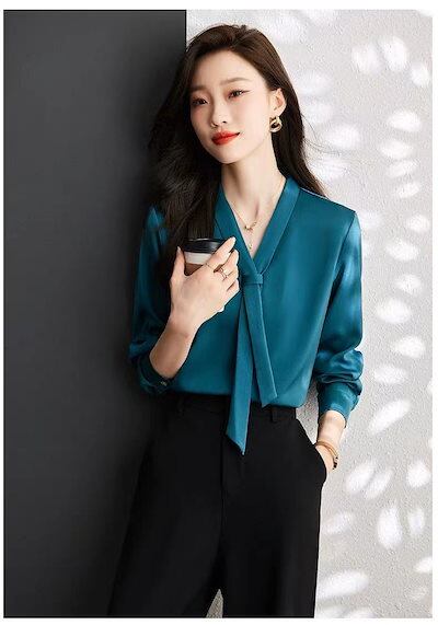 レディースシャツ 長袖 秋新作 ワイシャツレディース v襟レディーストップス 百掛け やせて見える 韓国ファッション11
