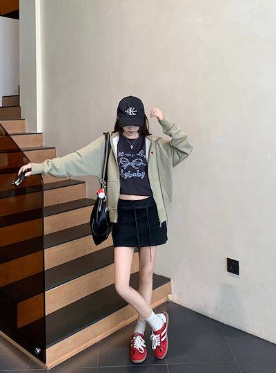 2024 秋冬アウター パーカー フード付き ジップ チャック 長袖 花柄 ポケット ハート 細見え 秋 緑 カーキ おしゃれ かわいい ガーリー キュート 甘め 韓国ファッション レディース お出か | DOKO-ME
