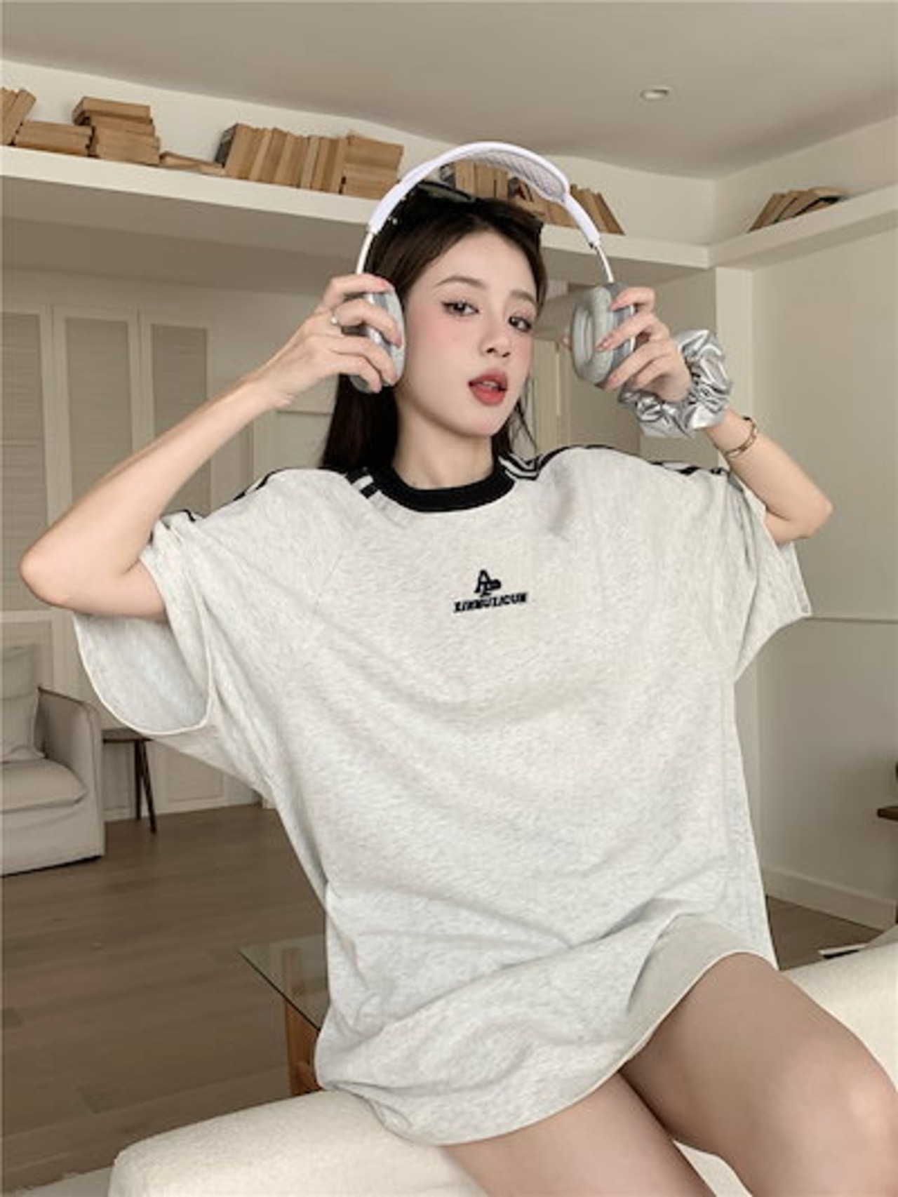 2024夏 韓国可愛い風トップス Tシャツ ロング丈 ファッション 半袖スリムフィット サイド ペイントシルエット ゆったり 休日レディースサイズ韓国系ネック_おしゃれ カジュアル メンズライク T | DOKO-ME