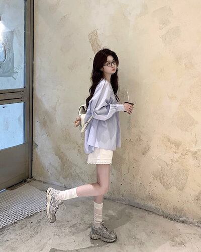 2024秋冬パフスリーブゆるストライプシャツ