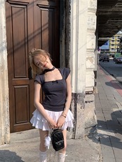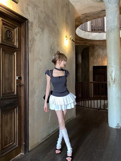 2024秋 甘く tシャツ 長袖 トップスレディース レイヤードファッション系重ね着風カットソーインナーショート丈タイトフィット T 冬春 コーデきれいめ フェミニン上下セットアップフレンチ ネック | DOKO-ME
