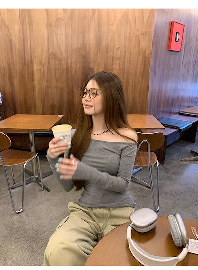 2024秋 長袖 Tシャツ ショート丈 カットソー トップス カジュアル 韓国系ストリート へそ出し タイトネックスリーブ 肌見せ T ファッションレディース かわいい衣装風冬トップス | DOKO-ME