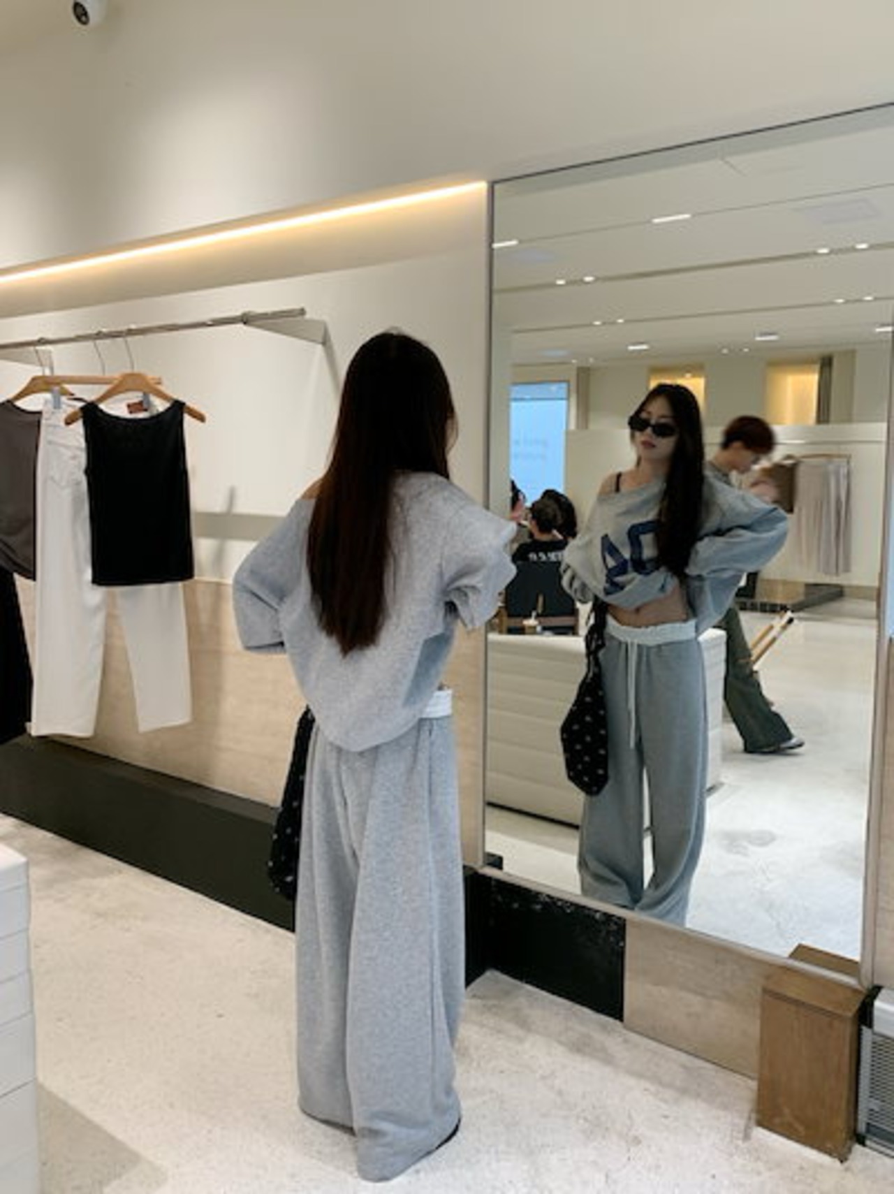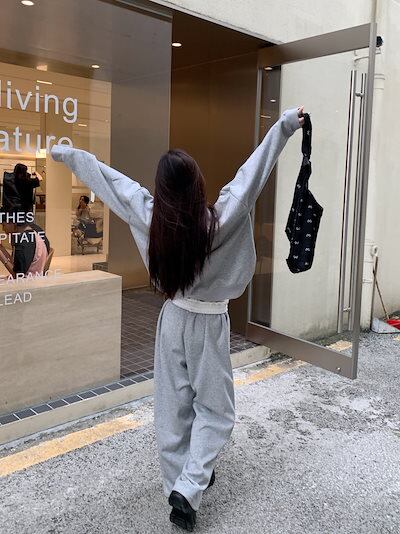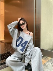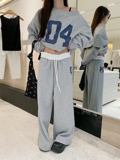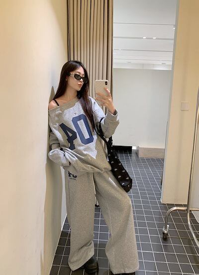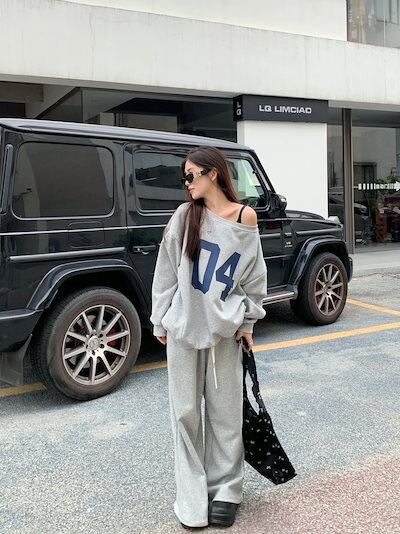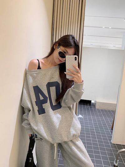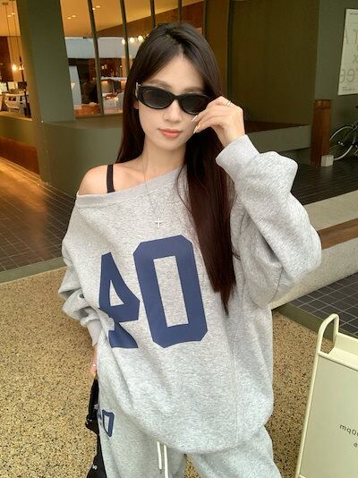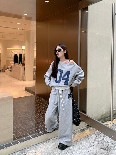 2024 秋冬 トップス 長袖 かわいいラウンドネック Tシャツ 肌見せ レディース ストレート 韓国風ルーズゆったりカジュアル おしゃれサイズ シルエットファッション系コーデ衣装上下セットアップ2 | DOKO-ME