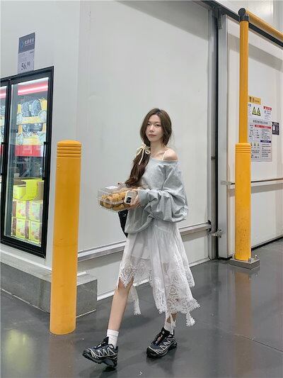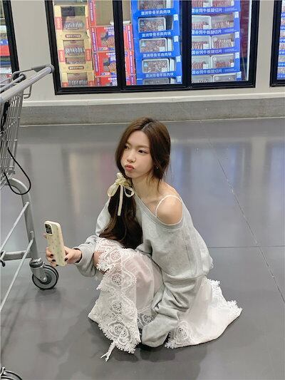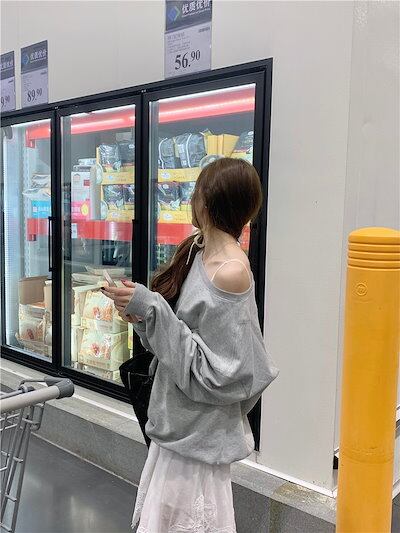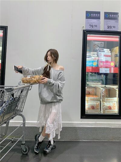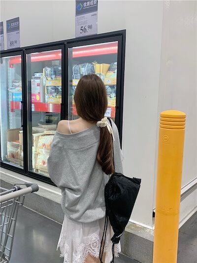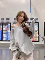 2024 秋冬 トップス 長袖 かわいいラウンドネック Tシャツ 肌見せ レディース 韓国風 ルーズ ゆったり 無地 カジュアル おしゃれサイズ シルエットファッション系コーデ衣装お出かけ4 | DOKO-ME