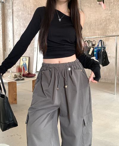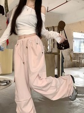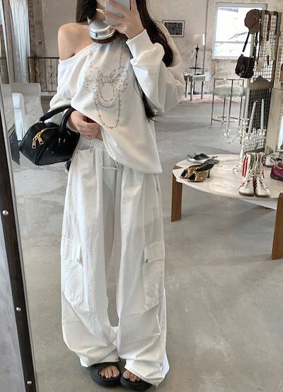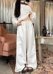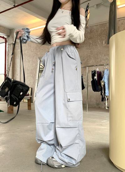 2024 夏パンツ ロング丈 ワイド ストレート サイドポケット ハイウエスト 美脚効果 脚長効果 細見え 夏 水色 白 おしゃれ かわいい 韓国ファッション レディース お出かけ | DOKO-ME