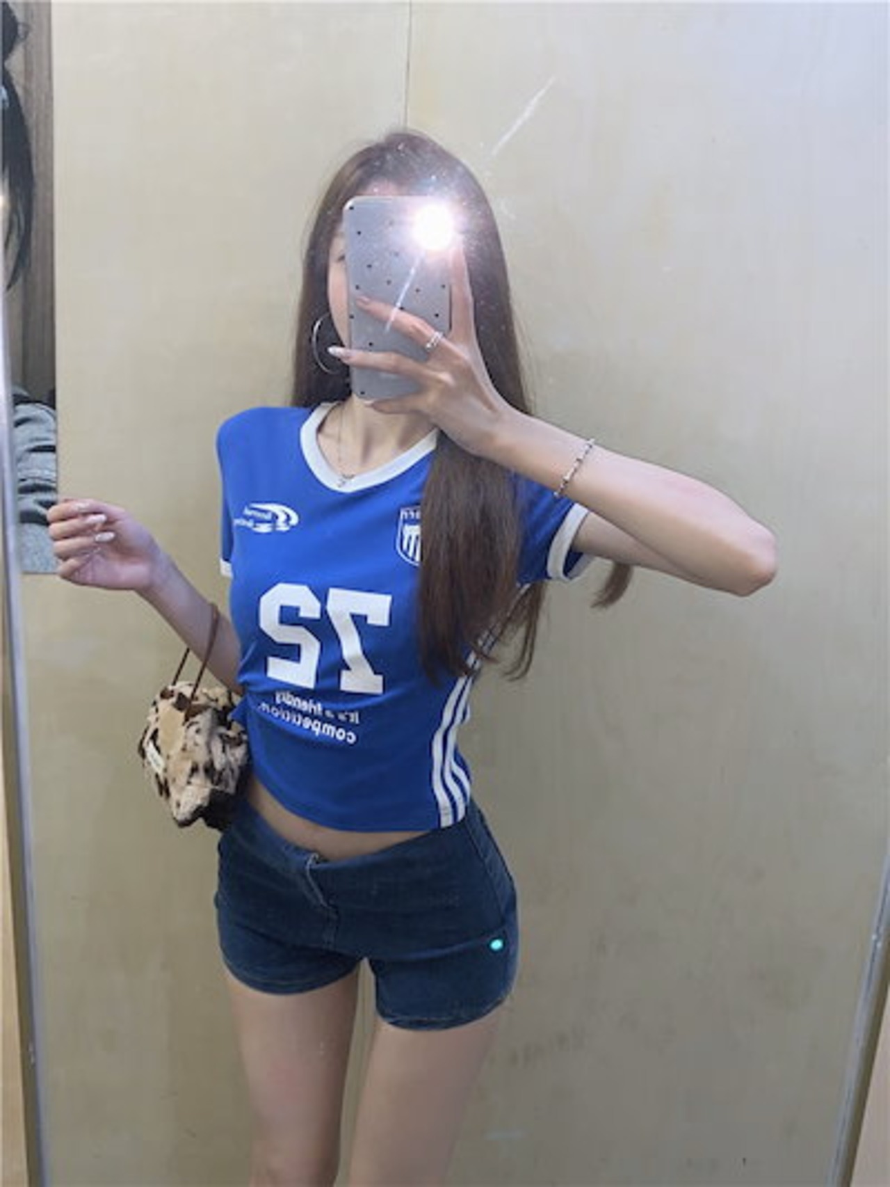 2024 春夏トップス 大人可愛い風半袖 Tシャツ 韓国 ラウンドネックロゴスリム かわいいへそ出しショート おしゃれスリーブカジュアルサイドコーデ丈 ファッション系レディースストリート T | DOKO-ME