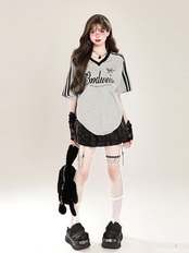 2024夏 韓国可愛い風トップス Tシャツ ファッション系 半袖 スリムフィット サイド ペイントシルエット ゆったり丈 休日レディースサイズ韓国Vネック おしゃれ カジュアル メンズライク T | DOKO-ME