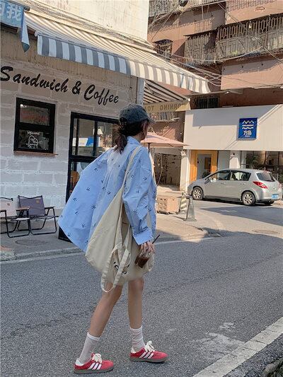 2024夏トップス シャツ 長袖 ボタン 襟 スタンダードカラー リボン 大きめサイズ 丈長め ゆったり 細見え 夏 水色 ライトブルー おしゃれ かわいい 韓国ファッション レディース お出かけ | DOKO-ME