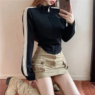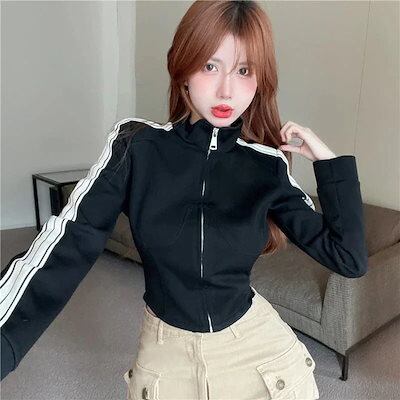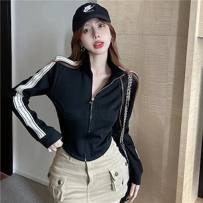 2024 春夏 ショート かわいい フル ブルゾン トップス アウター ショート スタンドショートお出かけハイストリートレディースアウター長袖セクシー トップスカジュアルファッション夏トラック | DOKO-ME