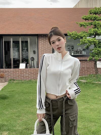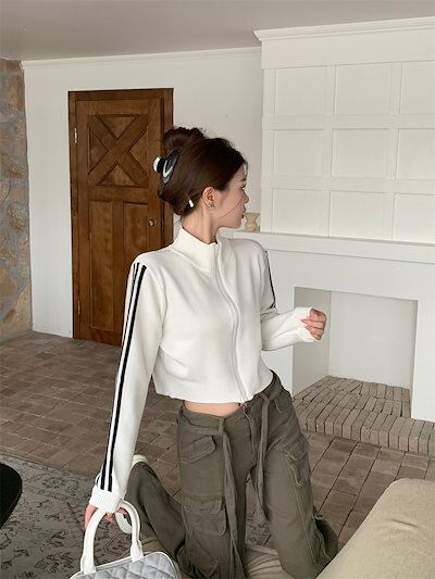 2024 秋 韓国 かわいい ニットネック レディース アウター ブルゾン お出かけ ブラック ライトカーキ アウター長袖セクシートップスサイド冬カジュアルファッション系お出かけフル丈 | DOKO-ME