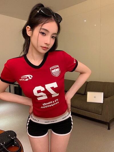 2024 春夏トップス プリント半袖 Tシャツ 韓国 ラウンドネックロゴスリム 可愛い風へそ出し ショート おしゃれスリーブ カジュアルサイドコーデ丈 ファッション系レディースストリートお出かけ T | DOKO-ME