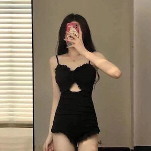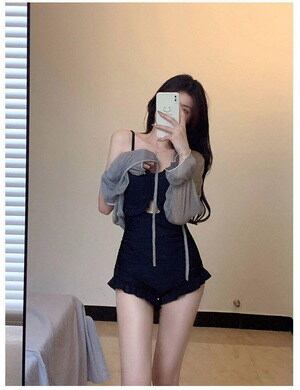 水着 長袖 モノキニ 日焼け止め 透け感 セクシー ボレロ ミニ ショート丈 フリル 可愛い 体形カバー ツーピース 2点セット お姉さん イイ女 スタイルアップ モテ レディース ブラック レッド | DOKO-ME